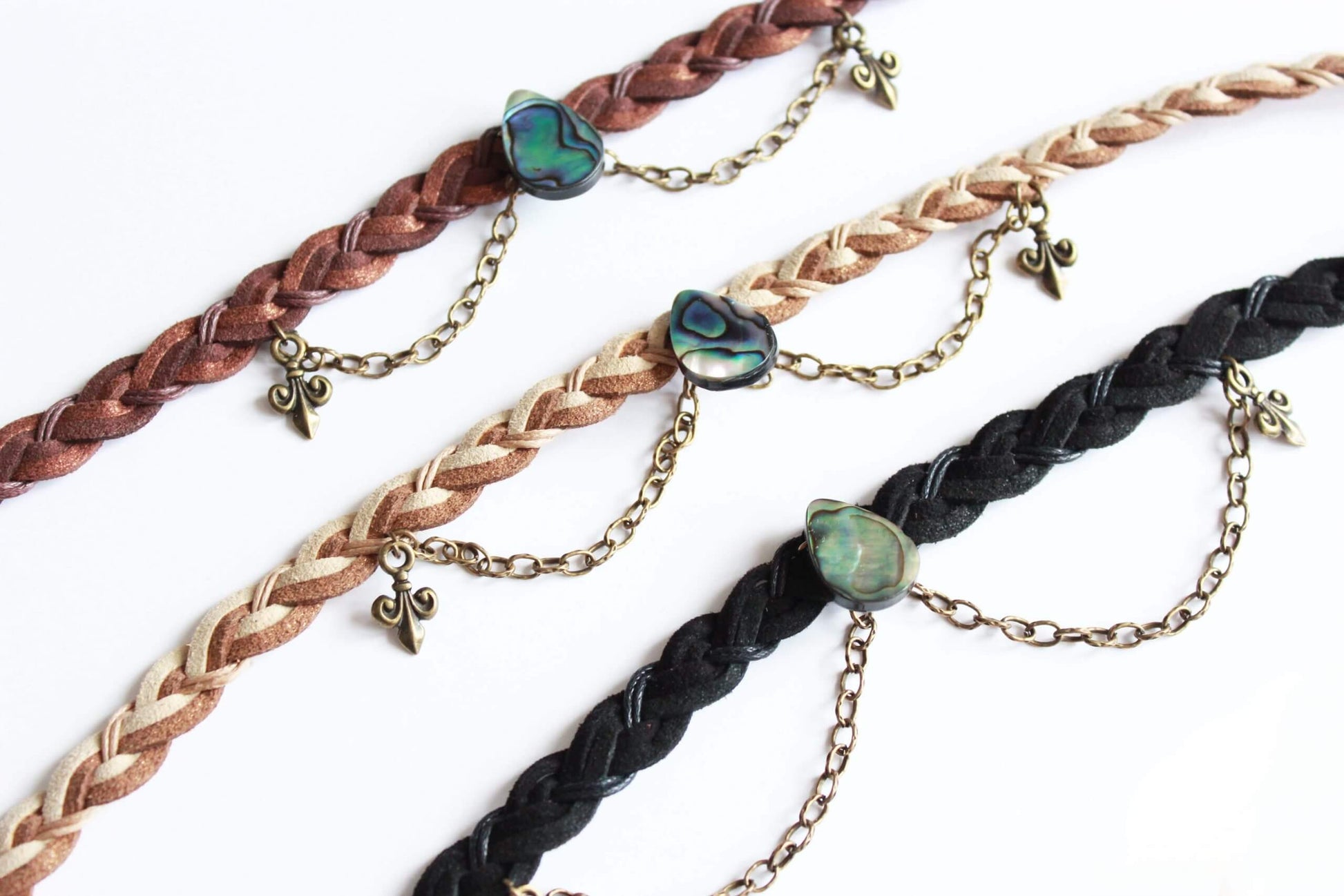 Este tocado ha sido trenzado con gamuza sintética, una alternativa resistente y respetuosa con los animales a la gamuza o al cuero.