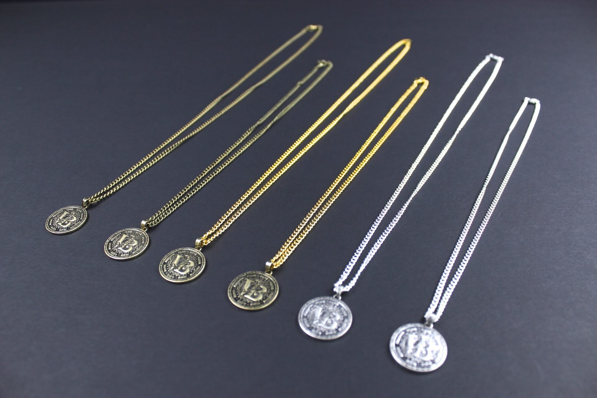 Disponible con cadena de bronce, chapada en oro o plata de ley. Y en longitudes de 45 cm o 60 cm.