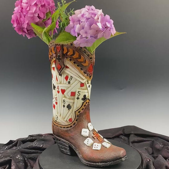 Medium Cowboy Boot Vase with poker playing card & dice design
